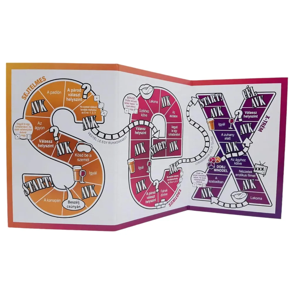 A SEX-et érzékien betűző táblán haladva három izgalmas fázison keresztül vezet az út: Sejtelmes, Erotikus és X-trém. Minden lépés egy újabb kalandot rejt magában, ahol a szerencse dönti el, milyen feladatokat kell végrehajtanotok és kié lesz a jutalom.