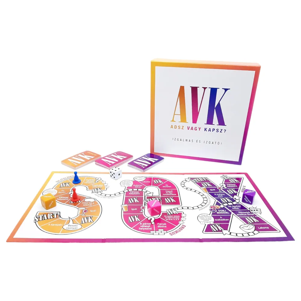 Az AVK: Adsz Vagy Kapsz? egy különleges felnőtteknek szóló játékélmény, amely garantáltan új szintre emeli az együtt töltött időt. Ez a magyar nyelvű társasjáték nemcsak inspiráló beszélgetéseket indít el, hanem lehetőséget ad arra is, hogy felfedezzétek egymás legmélyebb vágyait.