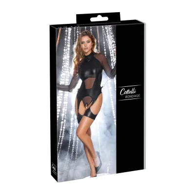 A szett tartalma:1 db ruha1 db bondage szalagTermék specifikáció, tulajdonságok:Hosszú ujjú kivitelTestre simuló anyagKaronként 5-5 gyűrűvelBondage szalaggal a csomagbanOrr fölé húzható nyakkidolgozásTeljes hosszban cipzárosSzín: feketeAnyaga: 90% polyester, 10% spandex