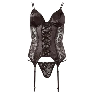 A csomag tartalma1 db áttetsző miniruha fényes mellrésszel1 db magas szabású tanga fényes hatású anyagbólTerméktulajdonságokTerméktípus: erotikus 2 részes fehérnemű szettSzín: feketeAnyag – hálós rész: 90% poliamid, 10% elasztánAnyag – fényes rész: 90% poliészter, 10% elasztán (poliuretán bevonattal...