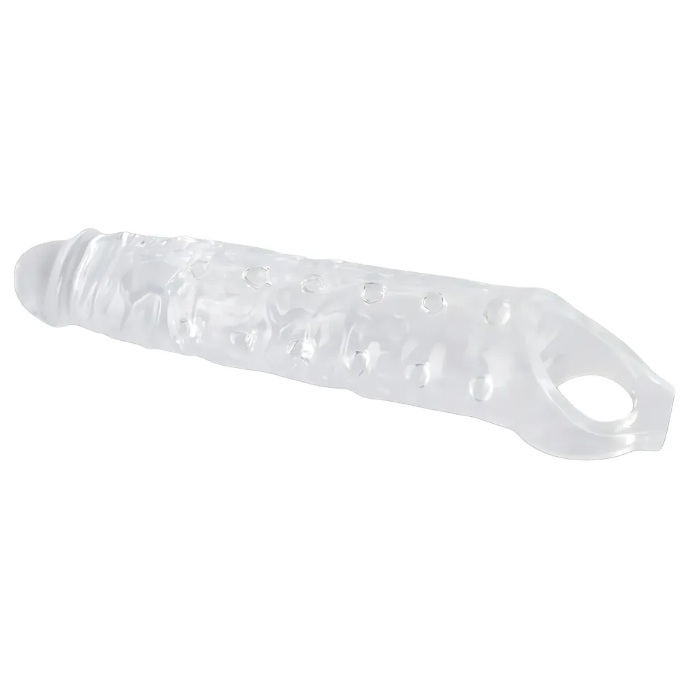 Magabiztosabb fellépés, intenzívebb élmény!Áttetsző színben készült péniszfeltét, mellyel akár 1cm-rel is vastagabb lehet férfiasságod. Formás pénisz alakú péniszmandzsetta, erezett felszínnel, rendkívül rugalmas, kellemesen selymes tapintású, szilikonszerű anyagból. Vastagítja a péniszt, mindkét fé...