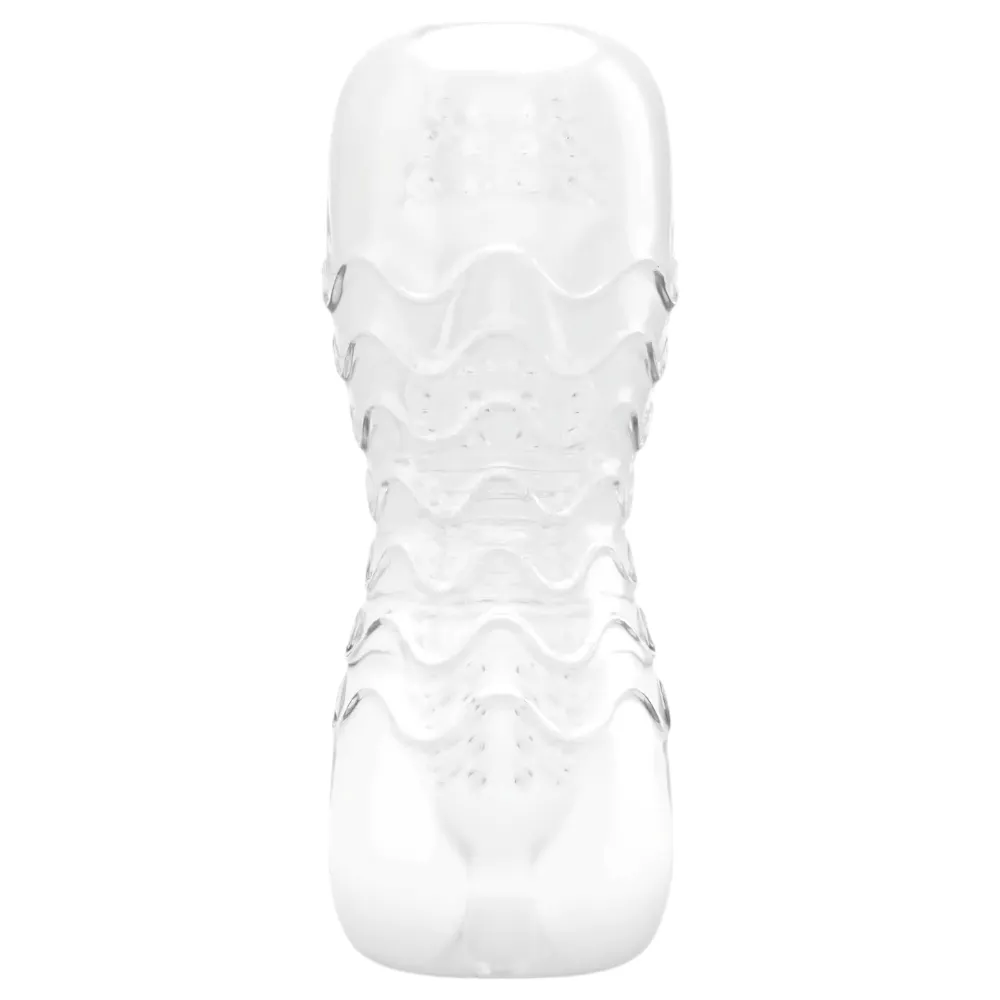 A csomag tartalma:1 darab maszturbátorTerméktulajdonságok:áttetsző maszturbátorbelső szerkezet: bordázat, kiemelkedéseksemleges kéjbarlangrugalmashossz: 18 cmszélesség: kb. 6,5 cmBehelyezési mélység: kb. 14 cmkéjnyílás belső átmérője: 2 cm (rugalmas)szín: áttetsző, sötétkék kupakkalanyag: TPE, PC, s...