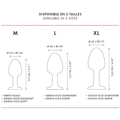 Teljes hossz (talppal együtt): 9cmBehelyezhető hossz (talpig): 7,5cmÁtmérő: 2,7cmSúly: 39g1db közepes anál dildó (M méret):