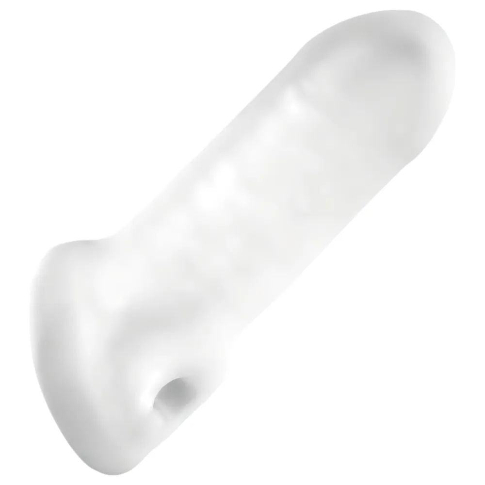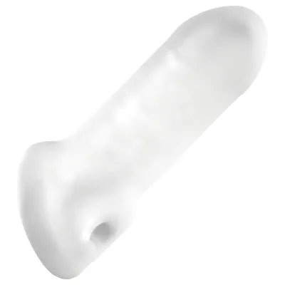 Hosszabbító péniszköpeny, kívül puha gömbökkel, belül lamellákkal.A köpeny vége tömör, így 4cm-rel hosszabbítja a férfiasságot.A termék teljes hossza 16cm, a belső hossz 11,5cm, átmérője 2,5-4cm, nagyon rugalmas.Anyaga: TPE (EU-rendeletnek megfelelő, phthalát-mentes). Áttetsző színben.Használati útm...