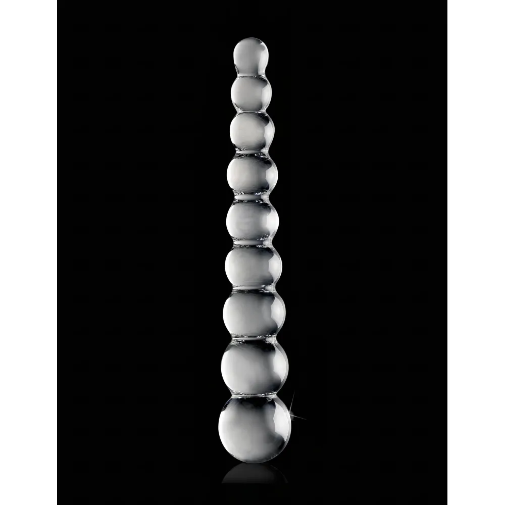 Kiváló minőségű, fúvott, vastag üvegből készült látvány dildó, áttetsző színben, gyönyörű rózsaszín gyöngyös mintázattal. Kialakításának köszönhetően, akár mindkét vége használható.