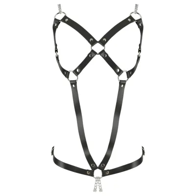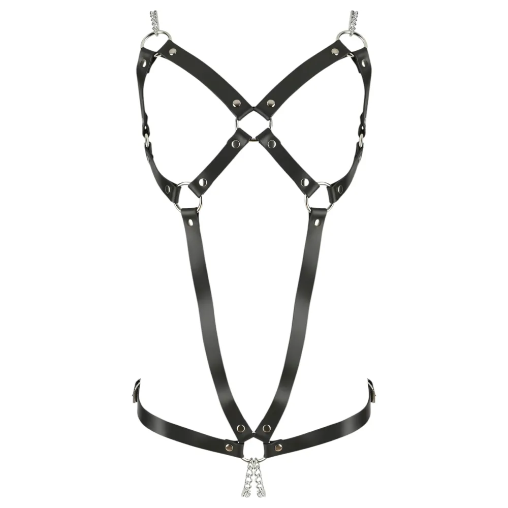 Kiváló minőségű, valódi bőr pántokból készülő, szegecsekkel gazdagon díszített body férfiaknak.