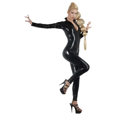 Enyhén rugalmas latexből készülő felső, rövid ujjakkal, magas nyakkal, elöl végig cipzárral.Anyaga: 100% latex (gumi), gyárilag matt, védőpúderrel van ellátva, felpolírozásához latex fényspray szükséges.Fekete színben.A harisnyát és egyéb kiegészítőket a csomag nem tartalmazza.FIGYELEM: A latex ruhá...