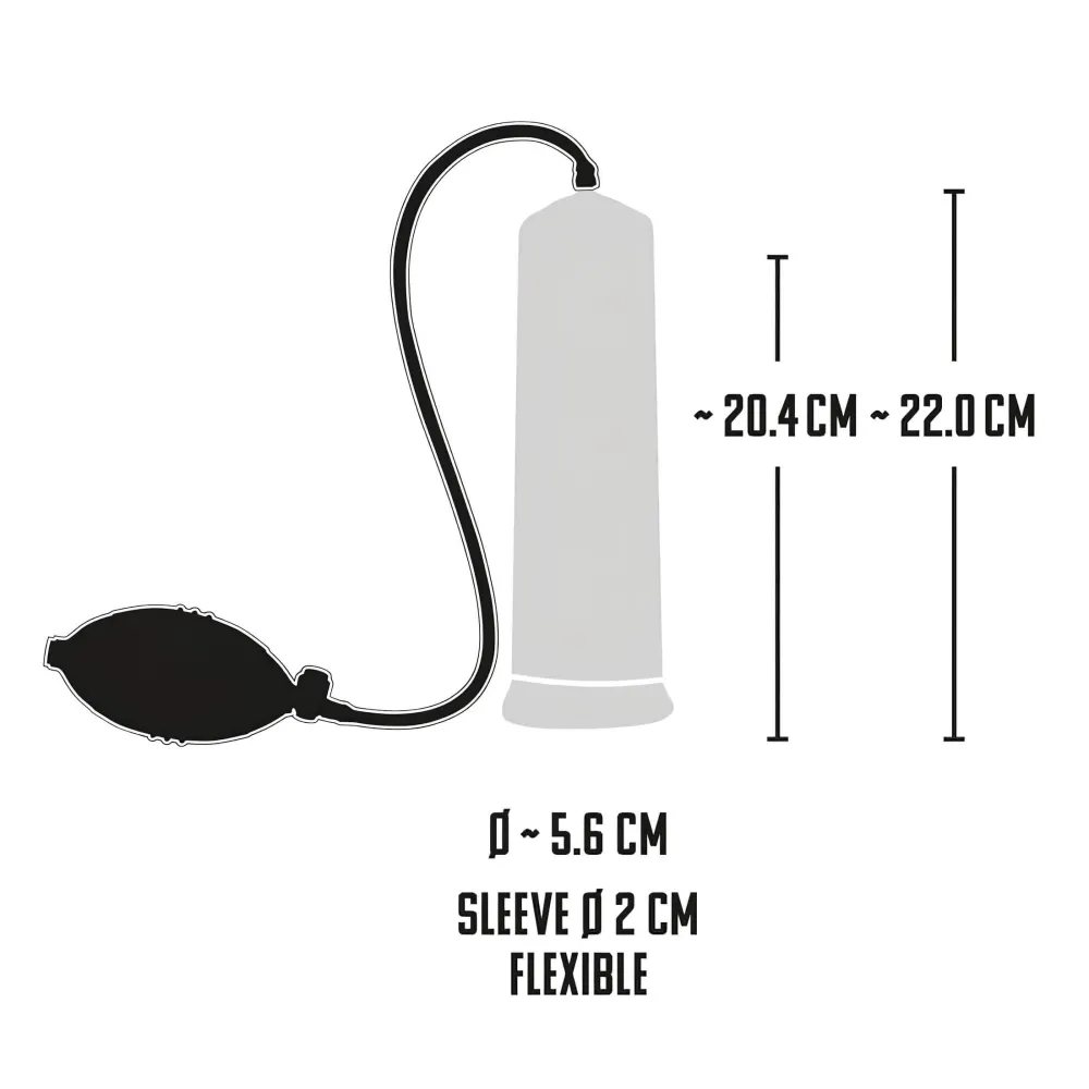Termék specifikáció, tulajdonságok:áttetsző vákuumhengerméretskála a hengerenlabdás pumpakarbiztonságos leeresztő szeleppuha mandzsetta - belső felülete stimulálóhenger teljes hossza: 22,5cmhenger külső átmérője: kb. 6cmhenger belső átmérője: 5,5cmmandzsetta hossza: 13,5cm (nagyon rugalmas)labdás pu...