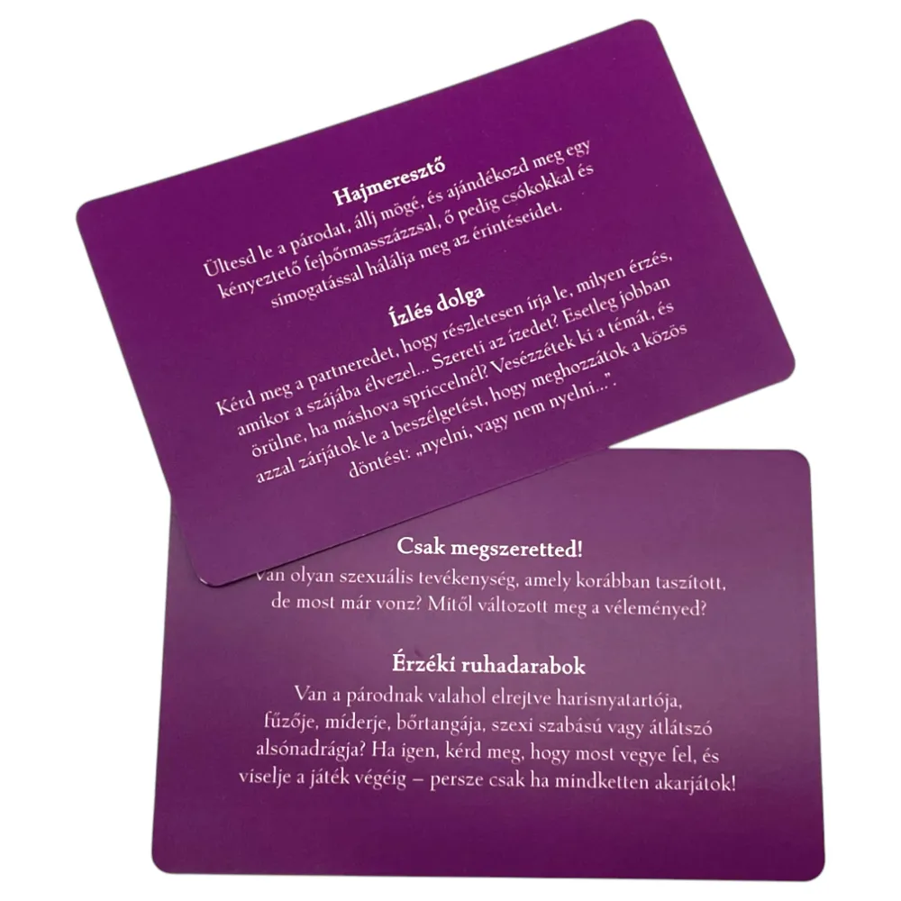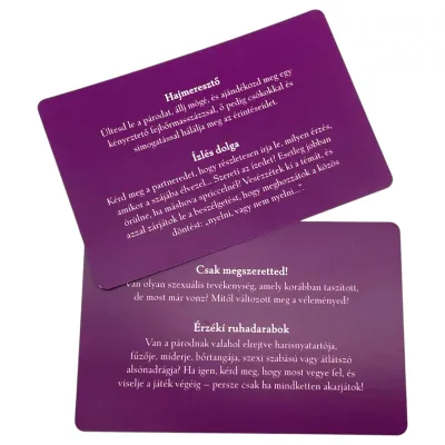 330 izgalmas feladat kártyával és 110 erotikus fogalom kártyával készül.