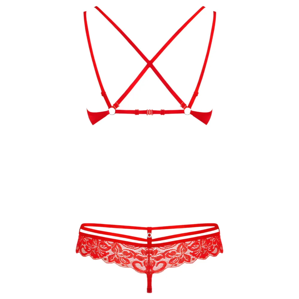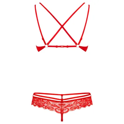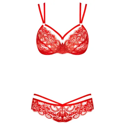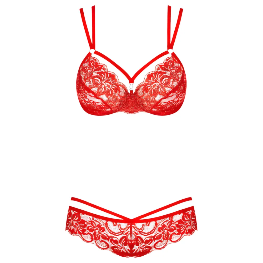 Obsessive 838-SET-3 - pántos csipke melltartó szett (piros)