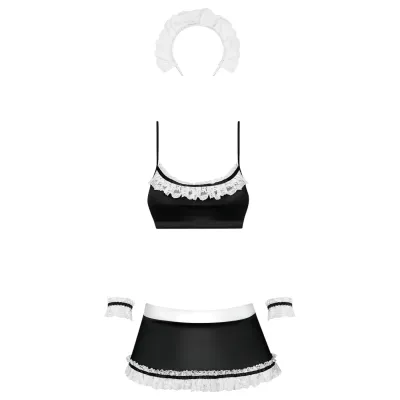 -kebleknél nyitott kialakítással, ahol csupán két kis szatén masni fogja össze az anyagot (nem kiköthető)Széles harisnyatartó fehér köténykével...