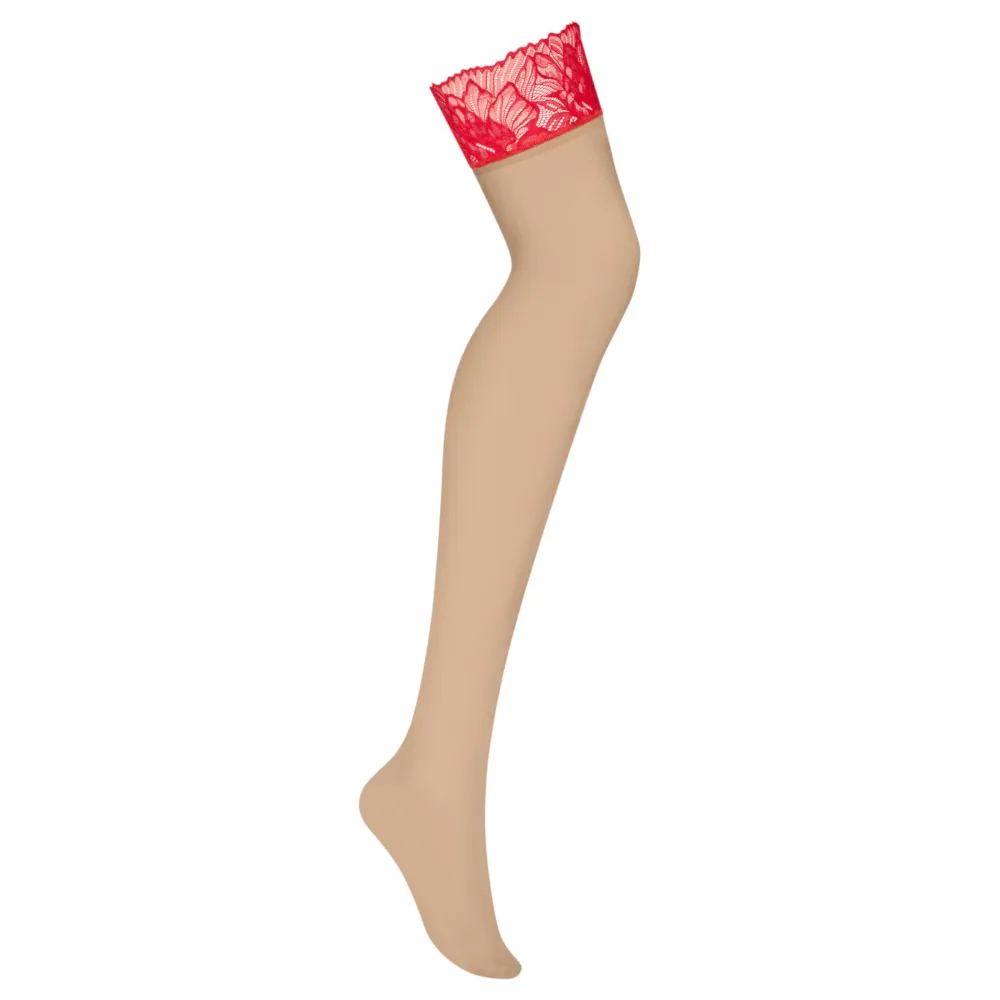 A csomag tartalma:1 pár Obsessive Rediosa harisnyaTerméktulajdonságok:Szín: bézs és pirosAnyag: 90% poliamid, 10% elasztánSúly: 41 g