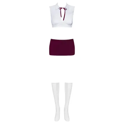 -kebleknél nyitott kialakítással, ahol csupán két kis szatén masni fogja össze az anyagot (nem kiköthető)Széles harisnyatartó fehér köténykével...