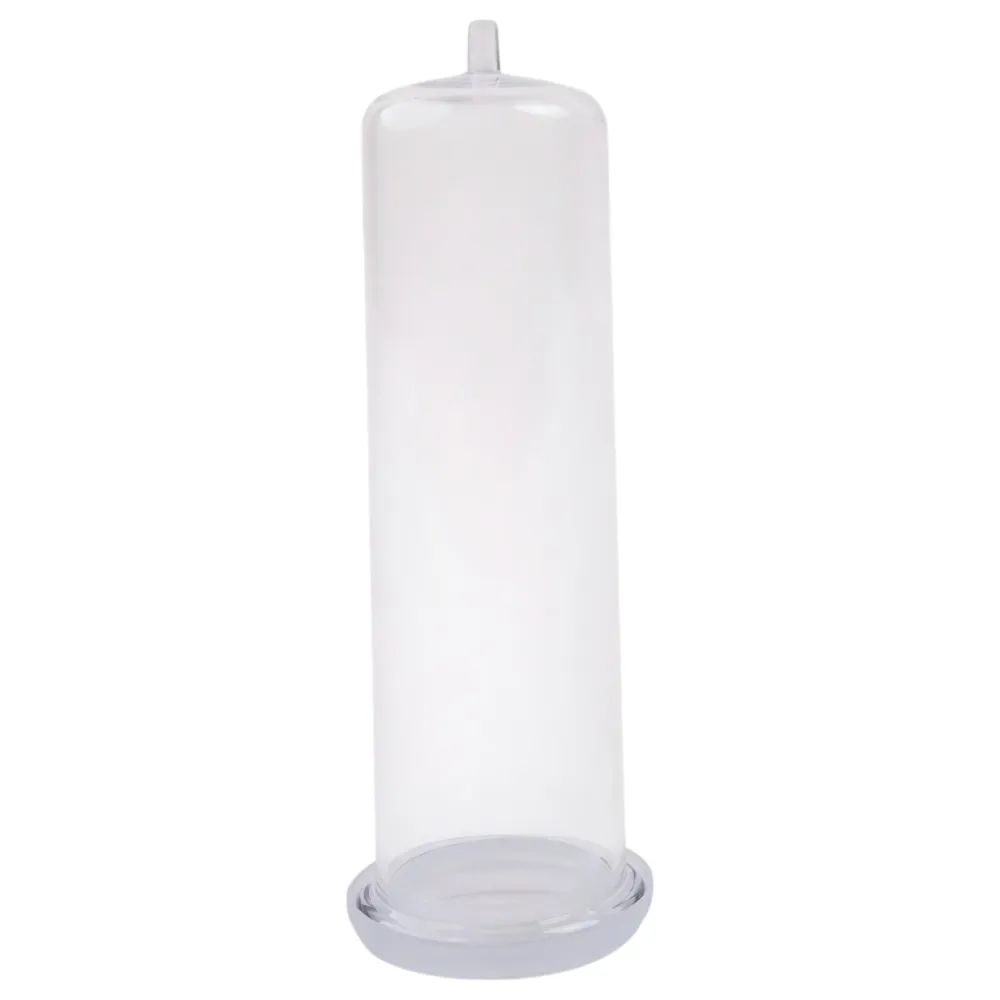 Áttetsző, műanyag vákuumhenger, puha, rugalmas, levehető, áttetsző színű szilikon mandzsettával, fekete tömlővel és labdás pumpakarral, valamint biztonságos, a vákuumot megszüntető leeresztő szeleppel.