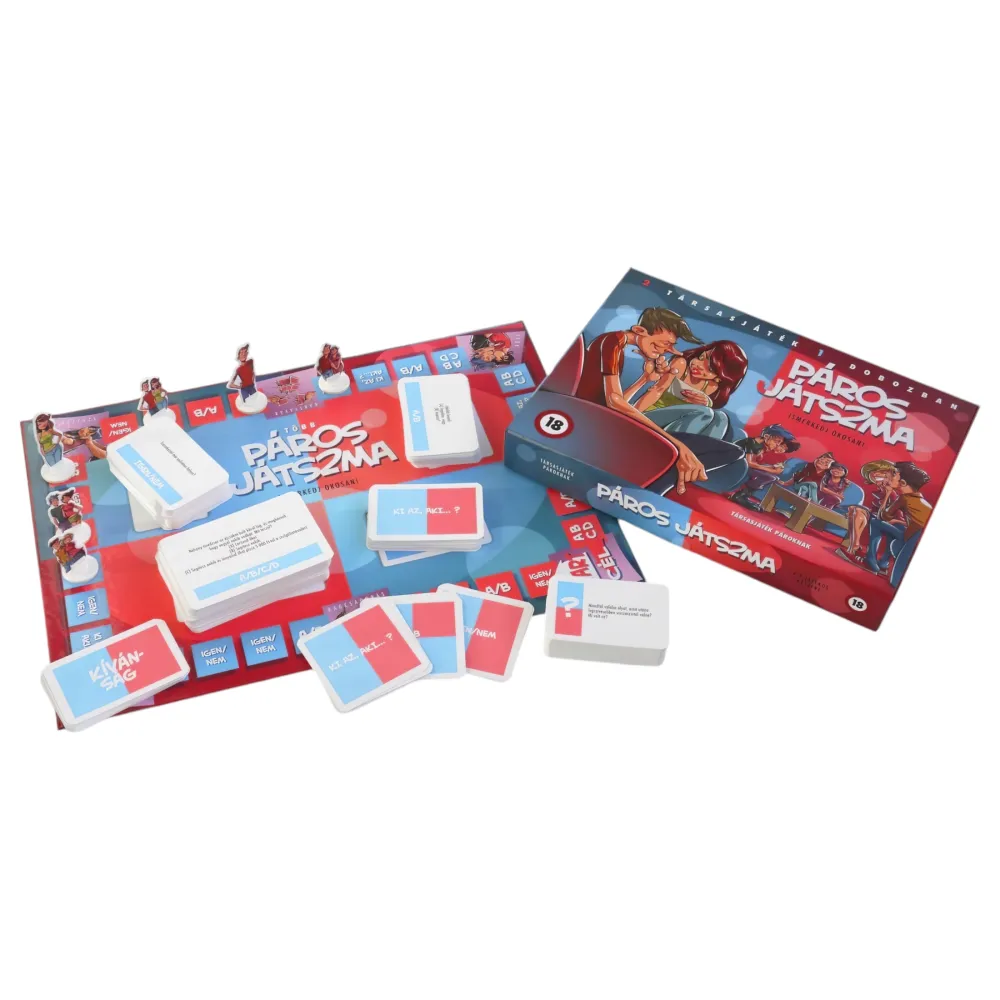 Mi is rejtőzik a dobozban?:1 darab játéktábla2 darab bábu12 színes karika (4db pink, 4db lila, 4db piros)1 darab dobókocka50 darab Fantázia kártya65 darab Intim kártya65 darab Szenvedély kártya65 darab Forró kártya1 darab játékleírásA doboz mérete: 39,5 x 20,5 x 7,5cmTIPP:A játék kezdetén készítsete...
