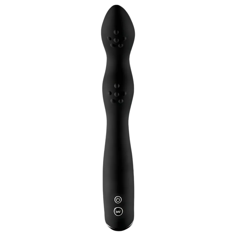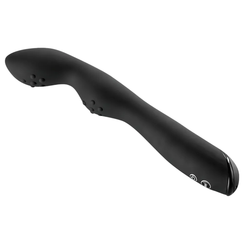 Tulajdonságok:-bőrbarát, ruganyos anyag-anatómiai, íves C-forma-bársonyos bevonat-sima felszín-kivehető minivibrátor-1 fokozatú rezgés-rücskös vég-prosztata és gát stimulálás-teljes hossz: 20cm-behelyezhető hossz: kb. 8,5cm-átmérő: 2,4-3cm-fekete szín, ezüst színű vibrátorAnyaga: ABS (vibrátor), 100...