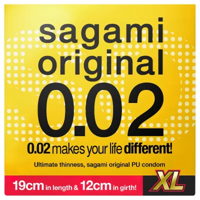 A csomag tartalma6 db Sagami Original 55 mm óvszerTerméktulajdonságokAnyag: polyuretán (PU)Szélesség: 55 mmVastagság: 0.028 ± 0.008 mmSzín: áttetszőÍzesítés: nincsSíkosítás: igenSzag: szagtalanCsomagolás: egyedi bliszteres kiszerelés