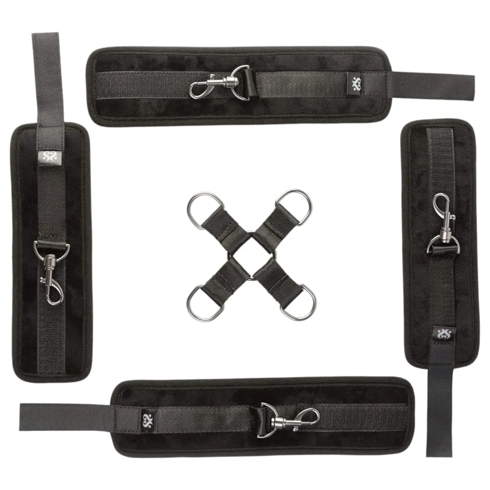 A szett tartalma:Összecsukható, párnázott fekvőfelület (pántokkal, hevederekkel, D-rögzítőgyűrűkkel)8db párnázott, tépőzáras kötöző pánt karabinerekkel (karok, lábak korlátozására)1db párnázott, tépőzáras nyakpánt karabinerrel és pórázzal1db szájpecek, állítható fejpánttal1db párnázott szemmaszk, gu...