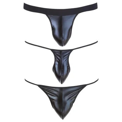 Kényelmes, rugalmas, fényes, fekete anyagból készült alsó férfiaknak, elöl péniszkiemelő szabással, hátul csupán néhány pánttal.Anyaga: 92% Polyester, 8% Elasthan.Fekete színben.