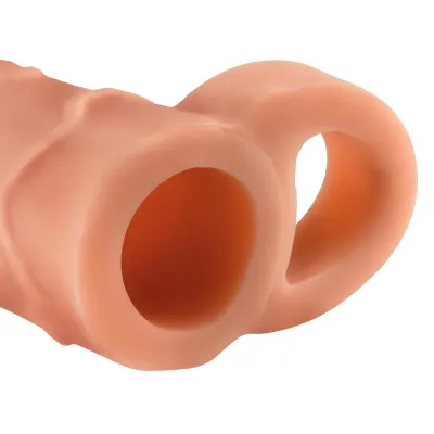 Termék specifikáció, tulajdonságok:élethű, nagyon rugalmas anyagbársonyos, puha tapintásrealisztikus formatömör makk és erezett felszín5 cm-el hosszabbít30%-al vastagítteljes hossz: 18,5 cmbehatolási mélység: 12 cmbelső átmérő: 3,3 cm (nagyon rugalmas)külső átmérő: 3,8 cmszín: natúranyag: TPE (EU-re...